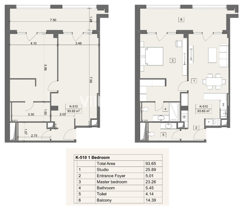 2 otaqlı Dəniz mənzərəli Arabian Ranches mənzilinin sahələri: