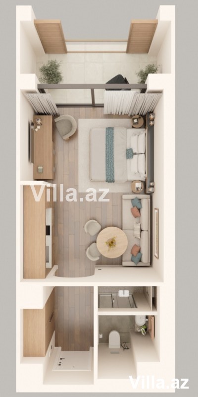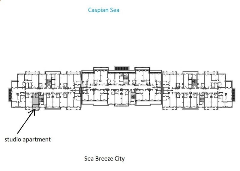 11 mərtəbəli binanın 9-cu mərtəbəsində yerləşən 37.97 m² studiya mənzil