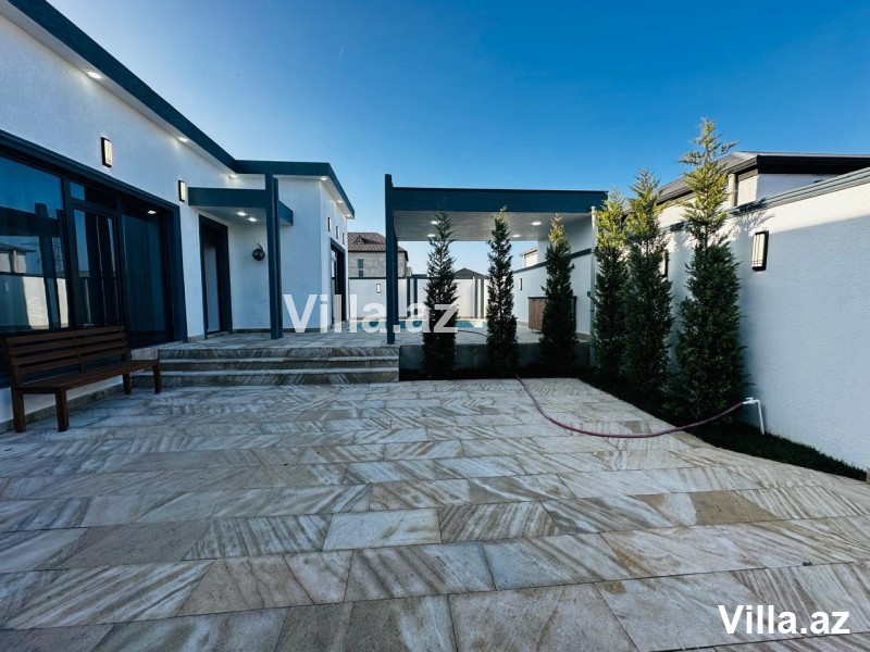 Həyətində baseyn, bisetka, manqal yeri, işıqlandırma sistemi, dekorativ ağaclar və distansion idarə olunan darvaza var. Qaz, işıq və su daimidir.