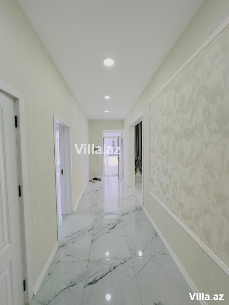 A single-story villa is for sale in the Shuvlan settlement, Khazar district, Baku city, located in a neighborhood with summer houses and cottages, near secondary school No. 230, on a plot of land measuring 4 sot (approximately 400 m²). It is suitable for permanent residence. The total area of the villa is 140 m² and it includes 4 rooms: a hall, a living room, 3 bedrooms, a kitchen, and 2 bathrooms. The yard features a spacious filtered swimming pool, a gazebo, a barbecue area, lighting, decorative trees, a sanitary unit, and remote-controlled gates. High-quality construction materials were used in the building, and everything is neatly done. Gas, water, and electricity are supplied continuously. The documents are in order (title deed available).