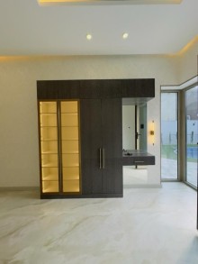 Yeni mətbəx mebeli yığılıb. Həyətyani sahədə geniş üzmə hovuzu, qazon, yay qış mətbəxi 40 kv/m, sanitar qovşağı mövcuddur. 2 avtomobil üçün qaraj.Həyətin və evin gecə işıqlandırma sistemi var