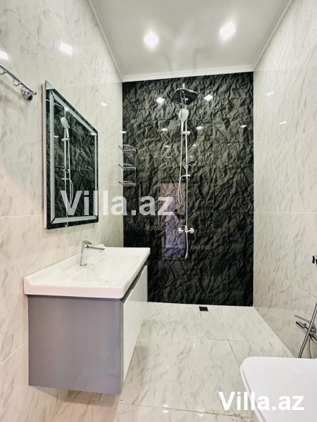 Mərdəkan villa bağ evləri satışı Bakı şəhəri. Torpaq sahəsi 400 m2, yaşayış sahəsi 200 m2, 2 mərtəbəli 5 otaqlı ev. 1-ci mərtəbədə sanitar qovşağı, qonaq otağı, mətbəx, sanitar qovşağı. 2-ci mərtəbədə 3 yataq otağı, 2 sanitar qovşağı, terras. Yeni mətbəx mebeli qurulub. Həyətyani sahədə hovuz, manqal, sanitar qovşağı. Su, qaz, elektrik daimi. Sənədlər qaydasında. Qiymət 345.000 azn