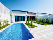 Bakı şəhəri Mərdəkanda modern ev satılır körpüdən təxmini 800 metr məsafədə. 1 mərtəbə 4 otaqlı ev 4 sot torpaq sahəsində inşa edilib. Yaşayış sahəsi 170 m2. Yeni mətbəx mebeli yığılıb. Həyətyani sahədə hovuz, besedka, sanitar qovşağı və 2 avtomobil üçün qarac mövcuddur. Su, qaz, elektrik daimi. Sənədlər qaydasında.