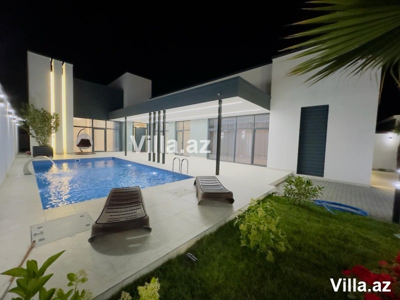 Mərdəkan, Bakı şəhərində yeni tikili 1 mərtəbli lux villa ev satılır. Tandirloin restoranı və Əncirlik marketə yaxın. Yeni bağ evi 7 sot topraq sahəsində inşa edilib və 300 m2 yaşayış sahəsinə malikdir. 1 qonaq otağı, 4 yataq otağı, mətbəx və 3 sanitar qovşağından ibarətdir. Həyətyani sahədə hovuz, manqal, besedka, yay qış mətbəxi mövcuddur. Su, qaz, elektrik daimi. Evin və həyətin gecə işıqlandırma sistemi. Gözəl dekorativ yaşıllıq sahəsi. Bravo supermarketə avtomobil ilə 6 dəqiqə. Ev daimi yaşamaq üçün münasibdir. Sənədlər qaydasında.