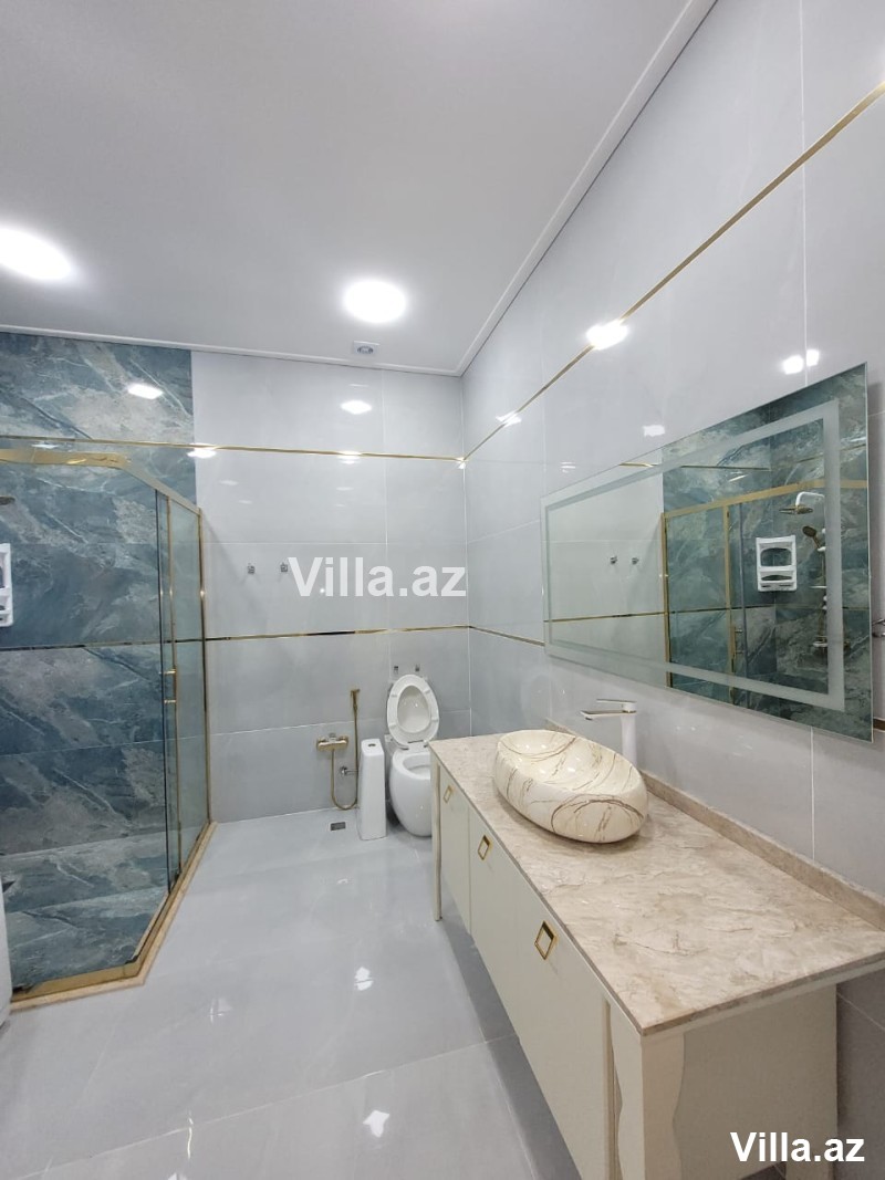 Buzovnada, Duz Çörəyi keçəndən sonra Buzovnaya gedəndə yolun sağında 15 Sotda 2 mərtəbə 350 m2 yeni ev satılır. 6 otaqlı yeni təmirdən çıxmış modern əla bağ evini sizə təqdim edirik. Bağ evi geniş zal, 5 yataq otağı, 3 eyvan, holl, mətbəx və 4 sanitar qovşağından ibarətdir. Su, qaz, elektrik daimi. Tam hazır sanitar qovşaqları, otaqlarda asılmış pərdələr və lyüsturlar, yeni mətbəx mebeli, işıqlandırma sistemi, isti döşəməsi var. İstilik sistemi kombid. Həyətyani sahədə dekorativ ağaclar, yaşıllıq ərazisi, geniş hovuz, manqalxana, pultla idarə olunan jalyüz darvaza, besedka, sanitar qovşağı, yay-qış mətbəxi. 5 maşınlıq qaraj, qazanxana, mühafizə evi, 10 tonluq su çəni, sensorlu gecə işıqları var. Bağ 4 mövsüm yaşamaq üçün əlverişlidir. Bütün sənədləri qaydasında, Kupçası (Çıxarışı) var.