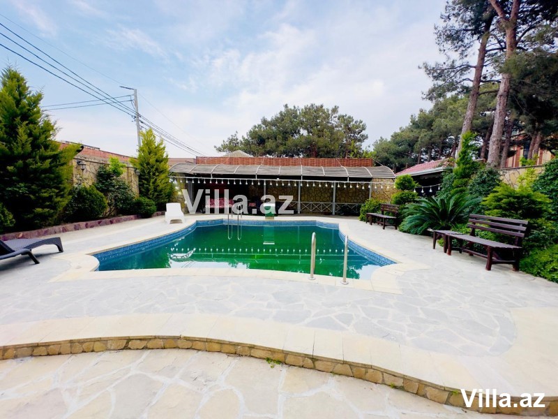 Продается индивидуальный дом, подходящий для постоянного проживания, в элитном районе по дороге в Бузовна, к Кардиологическому центру. Участок расположен в 300 метрах от дороги, что делает его удобным для жизни. Вилла общей площадью 300 м², 2 этажа + мансарда. На 1-м этаже: гостиная, кухня, 2 санузла. На 2-м этаже: гостиная, 3 спальни, 2 санузла и мансарда. Во дворе: беседка, бассейн, зона барбекю, гараж на 2 машины. Все коммуникации (вода, газ, электричество, интернет) – постоянно действующие. Установлены и функционируют камеры видеонаблюдения. Документы в порядке. Останется часть мебели и оборудования.
