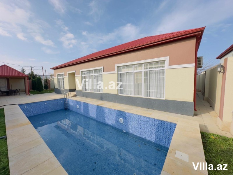 На придомовой территории есть длинный бассейн, беседка, зона для барбекю и зеленая зона. Постоянные вода, газ и электричество. Документы в порядке.