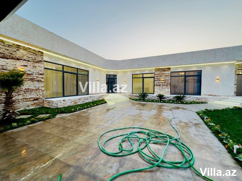 В городе Баку, поселок Мардакян, продается новый дом в 5 минутах от супермаркета Bravo. Одноэтажный 5-комнатный дворецкий дом расположен на участке 550 м², жилая площадь – 200 м². Вилла включает 4 спальни, гостиную, кухню, гардероб и 3 санузла. На придомовой территории есть бассейн, мангал, парковка, декоративная зелень. Вокруг постоянные соседи. Вода, газ, электричество – постоянно. Документы в порядке.