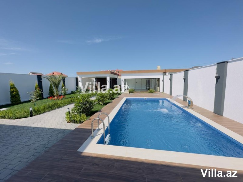 Xezer rayonu Merdekan qesebesi '' BRAVO '' yolun ustunde 6.5 sot torpaq sahesinde insa edilmis 1 mertebeli villa satılır.Ümumi sahesi 230 kvm olan bu villanın holl ,1 zalı , 3 yataq otagi, 1 metbexi ,3-sanuzeli , qarderob , camasirxana movcuddur.Heyetinde terras ,2 masinli qaraj , qonaq evi her seraiti var , qeniş filtirli baseyin , manqalni , bisetka, yay metbexi ,sanuzeli ,dekorativ ağaclar,qazon , distansiyonu qapisi var. Qazi ,işığı ,suyu daimidir.Sendler tam qaydasındadır.( Kupça)