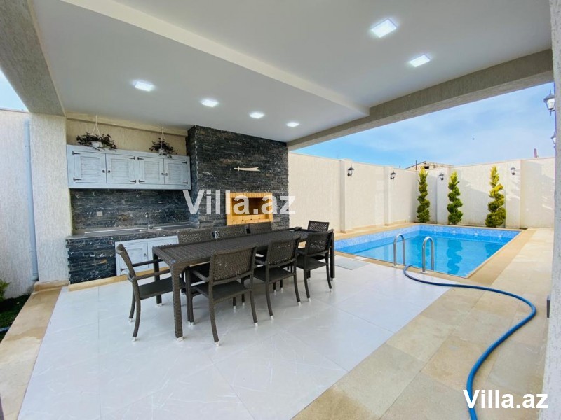 280 kv/m yaşayış sahəsi, 1-ci mərtəbədə : böyük zal, yataq otağı, mətbəx, xoll və sanitar qovşağı var. 2-ci mərtəbədə : 2 yataq otaöı, 2 sanitar qovşağı, 2 qarderob var. İstilik sistemi isti döşəmə. Həyətdə hovuz, besedka, san/qov, mühafizəçi evi var. Həyətdə dekorativ yaşıllıq zolağı salınıb. İşiq sensorları qurulub. Avtomatik darvaza. Su,qaz,işıq daimi. Sənədlər qaydasında 390.000 AZN 055 868 86 86