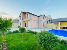 Mərdəkan qəsəbəsində müasir üslubda tikilmiş 2 mərtəbəli bağ evi satılır! 180m2 ümumi ərazisi olan bu evdə 5 otaq var. 1-ci mərtəbədə: zal, yataq otağı,mətbəx və s.q. 2-ci mərtəbədə: 3 yataq otağı, veranda, geniş xoll və 2 s.q yerləşir. Evin tikilməyində bahalı və keyfiyyətli materiallardan istifadə olunub. Evin bütün sənədləri qaydasındadır (çıxarış).Su, qaz, işıq təchizatı daimidir. 5 sot ümumi ərazisi olan bu bağın həyətində: besedka,yay mətbəxi, manqal, filter hovuz, çox sayda dekorativ ağaclar və s.q. var. Bağ il boyu yaşayış üçün tam yararlıdır