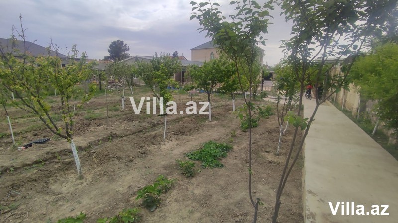 Həyətdə 300ə qədər hər növ meyvə ağacları və dekorativ ağaclar mövcuddur.