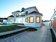 Mərdəkanda 3 mərtəbəli villa satılır 500 m2 ümumi ərazisi olan bu evdə 7 otaq var . -1-ci mərtəbədə:idman zalı, mətbəx, 2 yataq otağı və s.q var. 1-ci mərtəbədə: böyük qonaq otağı, böyük holl, mətbəx,qarderob və s.q. 2-ci mərtəbədə: 4 yataq otağı, qarderob, geniş xoll, veranda və 2 s.u . Evin tikilməyində bahalı və keyfiyyətli materiallardan istifadə olunub.Mərtəbə arası monolit betondur. Evin bütün sənədləri qaydasındadır (kupça, çıxarış).Su, qaz, işıq təchizatı daimidir.10 sot ümumi ərazisi olan bu bağın həyətində: çox sayda dekorativ ağaclar, besedka,yay mətbəxi, manqal və s.u var. Bağ il boyu yaşayış üçün tam yararlıdıar