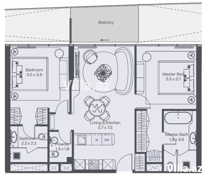 Mənzil xüsusiyyətlərinə şəxsi balkon və terraslar, mətbəx mebeli və stolüstü, tam kafel-metlaxlı sanitar qovşaqlar, ensuite master yataq otaqları, ikiqat şüşəli pəncərələr, daxili qarderoblar, hər sanuzeldə duş kabinəsi, mərkəzi kondisioner sistemi, ayna və vanna mebelləri, həmçinin peyk və fiber-optik internet daxildir.