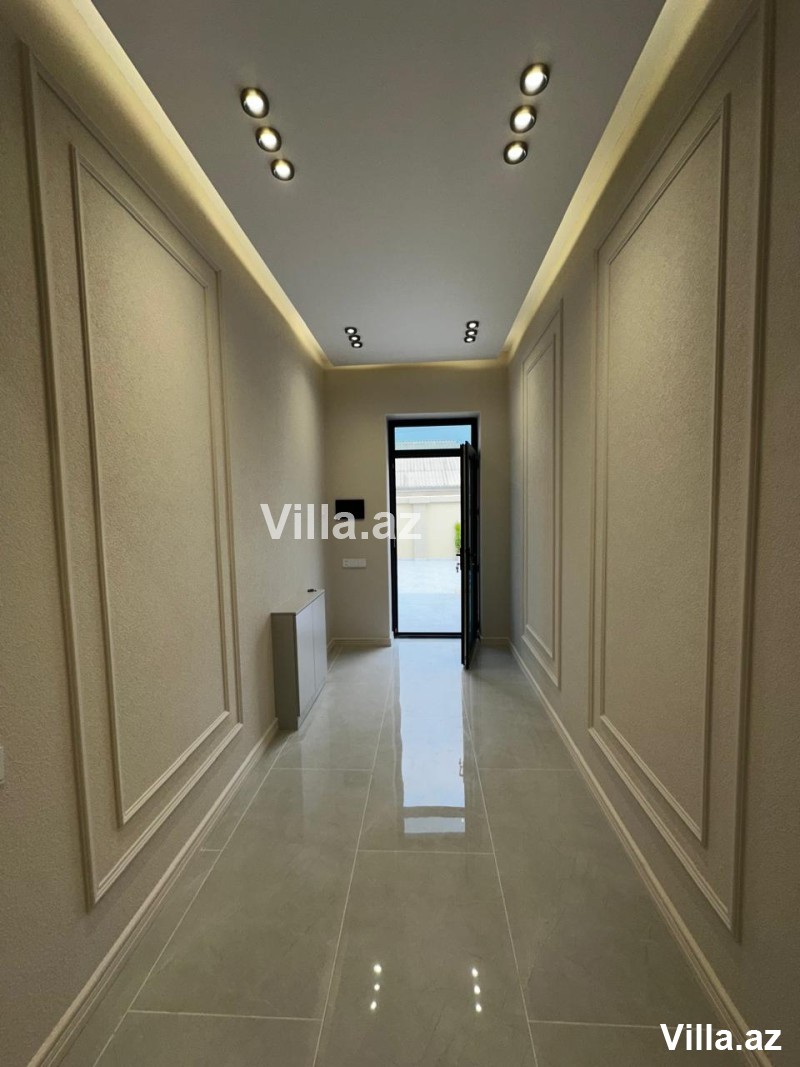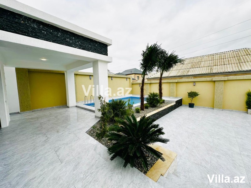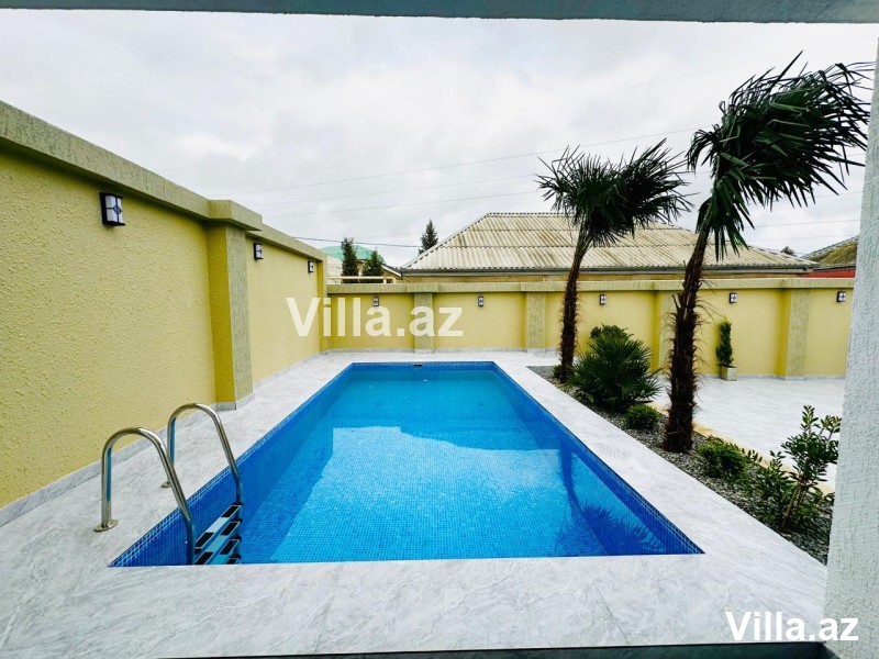 Mərdəkan qəsəbəsində 4 sot torpaq sahəsində yerləşən 1 mərtəbəli, modern üslubda tikilmiş 150 m²-lik ev satılır. Planlaşdırma: holl, geniş zal, 3 yataq otağı, mətbəx və 2 sanuzel. Həyətdə hovuz, manqal yeri, sanuzel, işıqlandırma sistemi, dekorativ ağaclar və distansion idarəetməli darvaza mövcuddur. Qaz, su, işıq daimidir. Sənədlər tam qaydasındadır, kupça var. Əlaqə: 055 868 86 86.