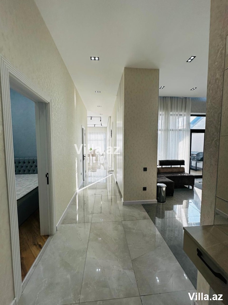 Evdə holl, geniş zal, mətbəx, 3 yataq otağı, 2 sanitar qovşağı və qarderob mövcuddur.