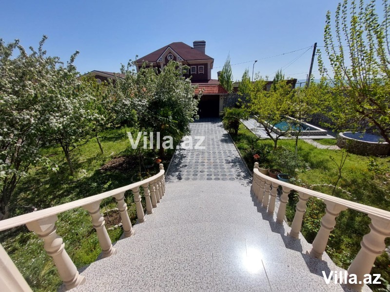Həyətdə baseyn və uşaqlar üçün nəzərdə tutulmuş əyləncə zonası