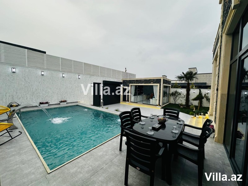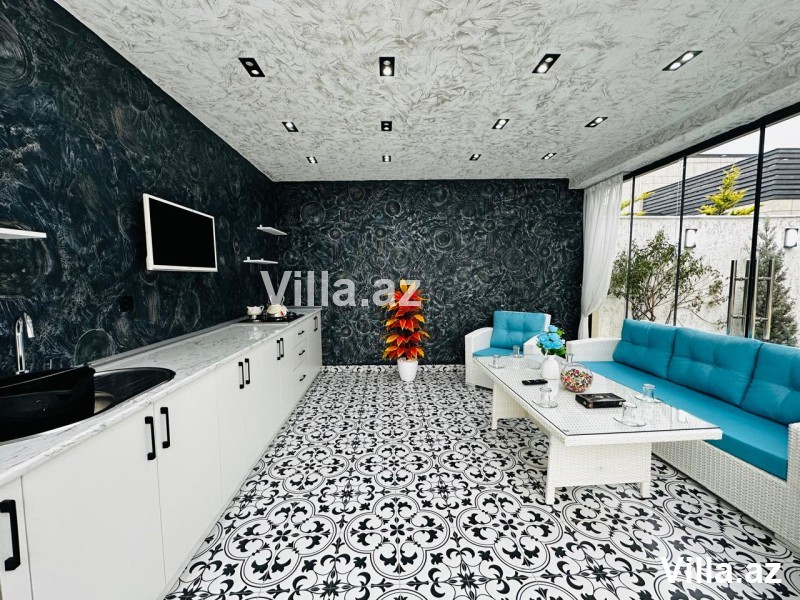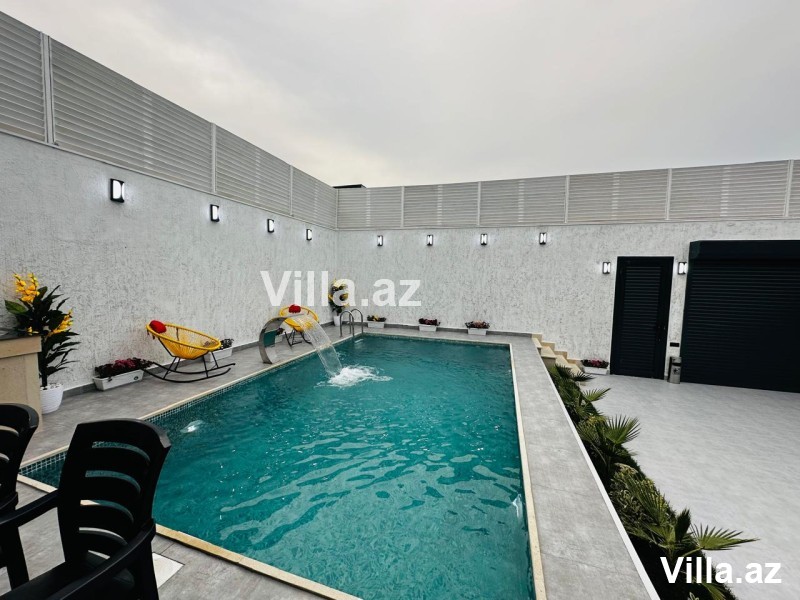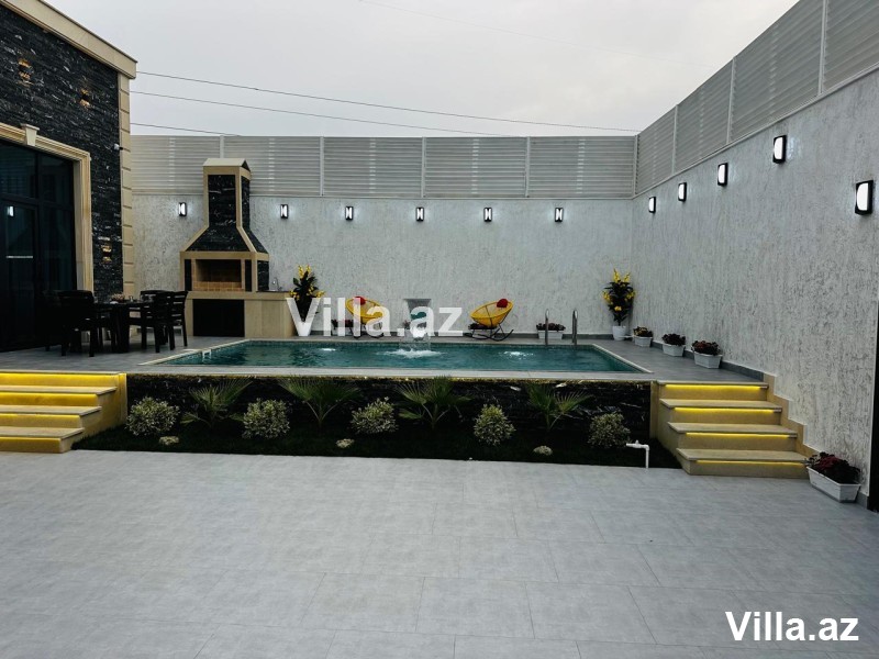 Mərdəkan əşyalı villa satılır. 4 sot torpaq sahəsində inşa edilmiş 1 mərtəbəli evin ümumi sahəsi 190 m²-dir. Holl, 1 zal, 3 yataq otağı, 1 mətbəx, 2 sanuzel və qarderob mövcuddur. Həyətində şəlaləli baseyn, besedka, manqal, cambalkonlu qonaq evi, dekorativ ağaclar, işıqlandırma sistemi, sanuzel, uzaqdan idarə olunan qapı və kamera sistemi var. Qaz, işıq və su daimidir. Sənəd – Kupça. Ətraflı məlumat üçün bizimlə əlaqə saxlayın.